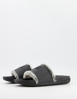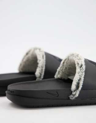 - Nike offcourt sliders in black with fur sale