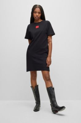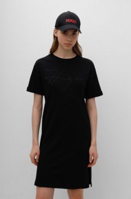 Hugo boss t shirt dress Outlet, HUGO - Interlock-cotton T-shirt dress Outlet