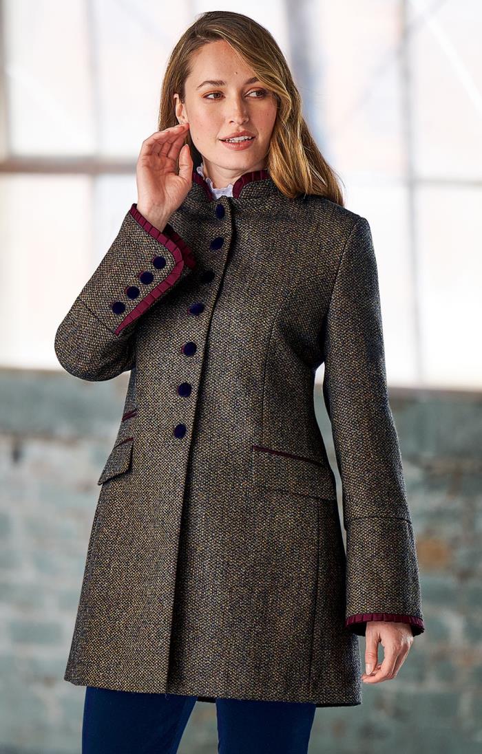 Womens tweed coat Outlet, Kesta Women's Long Length Moons Tweed Coat K1227M from Otterburn Mill Outlet